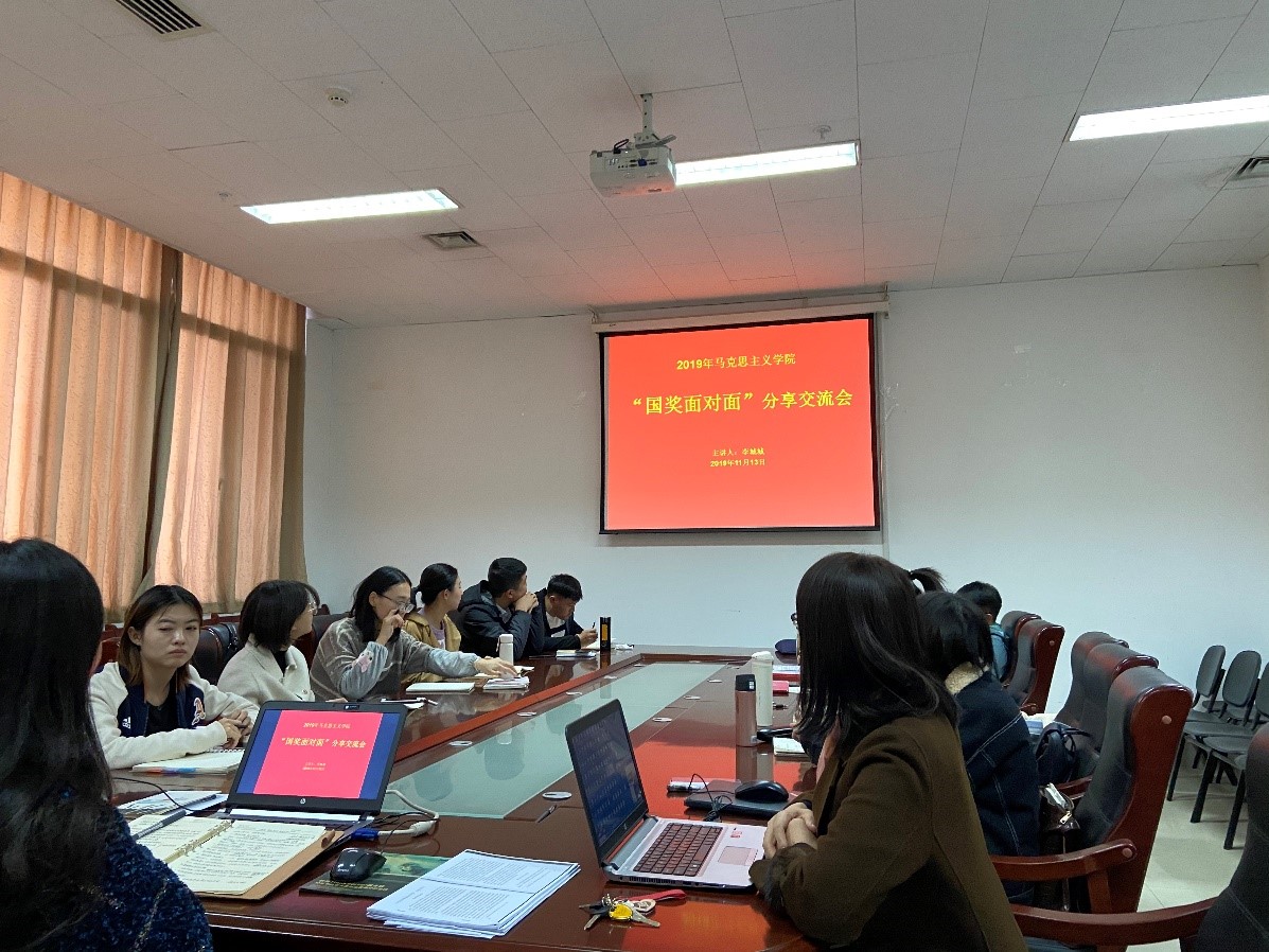 11月13日下午,肉漫屋 于606会议室举办了“国奖面对面”分享交流会。会议由徐莹副教授主持,国家奖学金获得者—2018级研究生李城城同学作了分享,2019级马克思主义理论专业的全体同学参加了这次交流会。