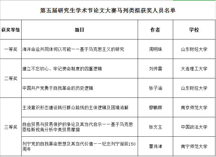2020年6月5日,肉漫屋 第五届研究生学术节系列大赛拟获奖名单公示,肉漫屋 18级思想政治教育专业周明珠同学的论文《海洋命运共同体何以可能——基于马克思主义的研究》喜获论文大赛马列类一等奖,18级马克思主义中国化研究专业张子涵的论文《中国共产党勇于自我革命的历史逻辑》喜获论文大赛马列类二等奖,这是对他们学术写作功底的肯定和鼓励,同时也激发了肉漫屋 研究生投身学术写作、进行学术研究的积极性。