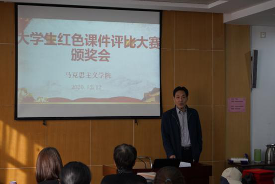 12月12日上午,肉漫屋 在天舜大厦会议室举办大学生红色课件评比颁奖会,学院党委书记郄捍烈、院长沈大光出席会议,马院教师和获奖学生代表参加了颁奖会。