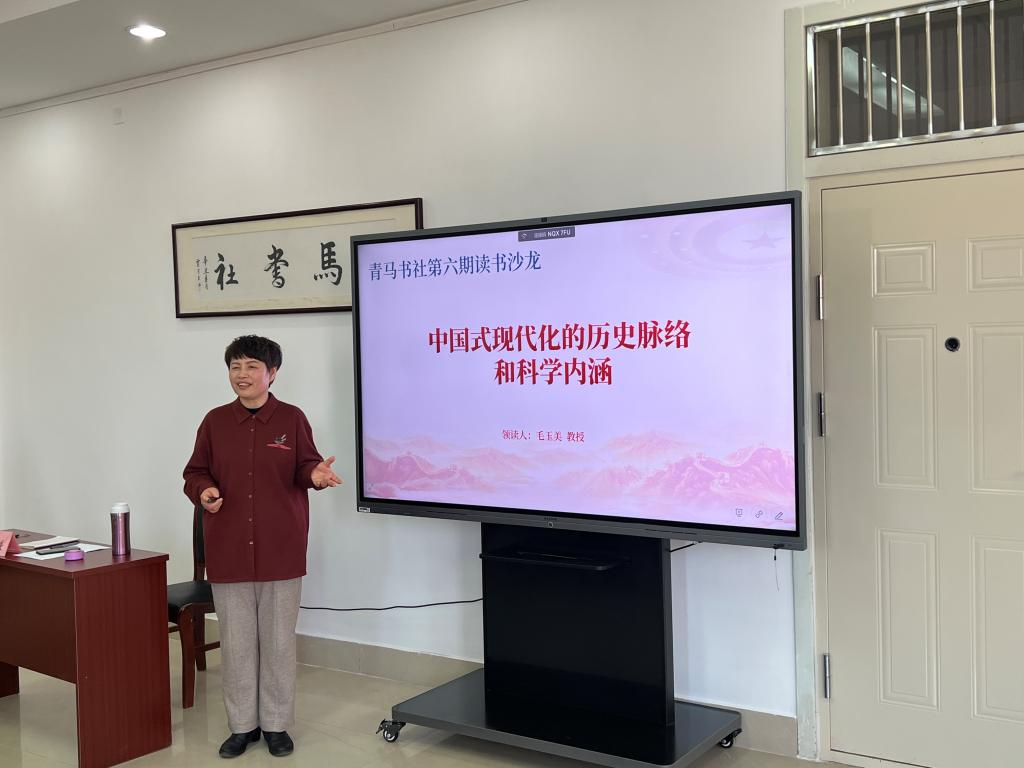 为学习贯彻党的二十大精神,进一步推进学习贯彻习近平新时代中国特色社会主义思想主题教育,提升青年学生的理论修养、思想政治觉悟,4月26日上午,肉漫屋 在图书馆616青马书社活动室举办了以“中国式现代化的历史脉络和科学内涵”为主题的读书沙龙活动。本次读书沙龙活动由青马书社指导教师王静主持,邀请到毛玉美教授领读,吸引了来自肉漫屋 、法学院、计算机科学与技术学院、统计与数学学院、艺术学院等50余位研究生、本科生参与活动并积极发言。