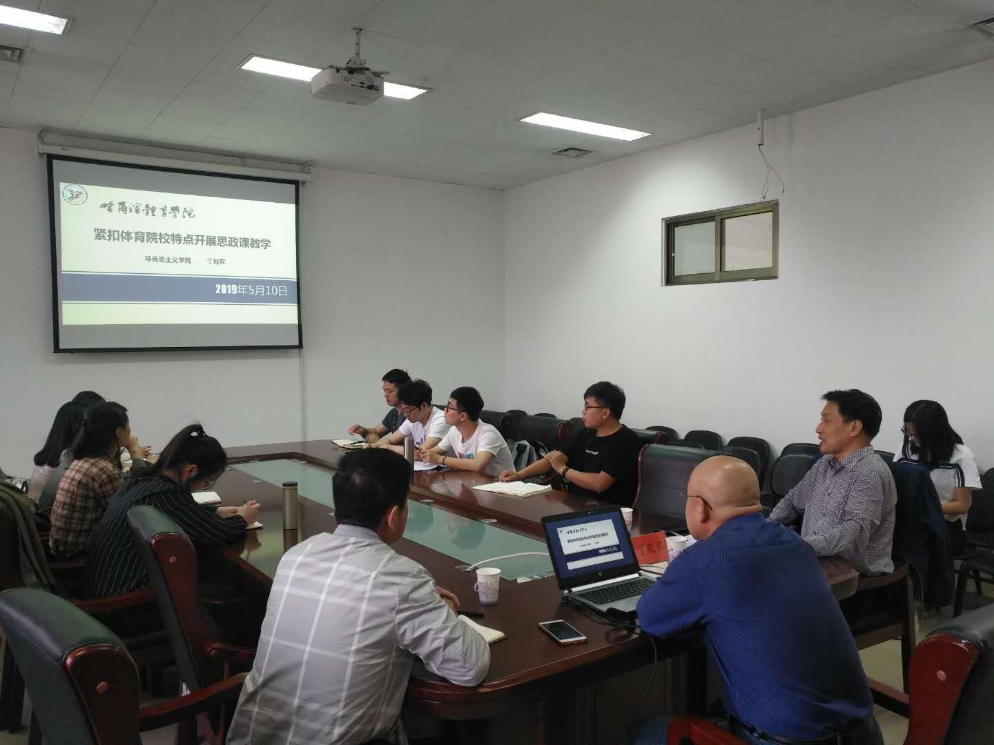 丁毅农教授首先介绍了哈尔滨体育学院和马克思主义学院的基本情况,哈体的马院独立设置的、直属学校领导的教学科研二级机构,承担着全校八门本科和研究生的思想政治理论课教学任务,其中习近平新时代中国特色社会主义思想“四进四信”专题辅导为学校特色课程。接下来丁教授重点介绍了如何紧扣体育院校的特点进行思政课教学。在严格遵循教材观点,科学把握教材体例的基础上,一是结合区域红色资源,如东北抗联精神、北大荒精神、大庆精神等丰富教学内容;二是结合体育院校的特点,有针对地开展思政教学。一方面,体育院校的学生活泼好动,不能采取教师满堂灌的方式,在原有课堂的基础上加入课堂讨论可以调动学生的积极性;另一方面,在思想政治教育中要加强武德教育,发扬更高更快更强的体育精神。让学生远离兴奋剂,文明健康参与体育训练。还要注重学生的体育道德,职业素养的教育,发扬体育精神。最后,丁院长介绍了马院今后工作的展望。逐步加强马克思主义学院学科建设,为思政教育教学服务;加大思政课堂教学方式改革力度,提高思政课堂的时效性;尽快配齐配强教师队伍;为实现冰雪特色鲜明、国内领先国际知名的高等体育强校贡献力量。丁院长讲座结束后,参会的研究生就丁院长的报告进行了热烈的讨论,山东财经大学马克思主义学院沈院长做总结发言。